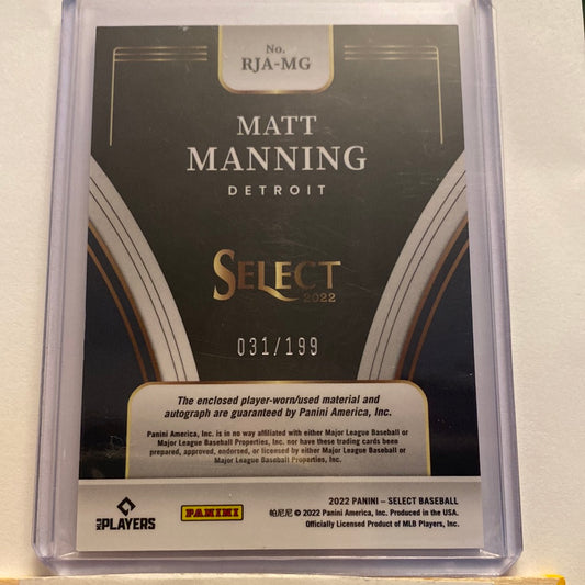 2022 Panini Select Matt Manning Relic Autographed trading card