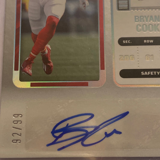 2022 Panini Contenders Bryan Cook 92/99 Autographed trading card