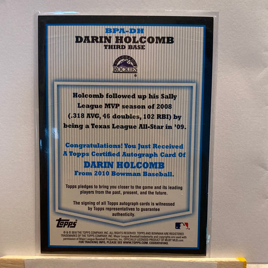 2010 Bowman Baseball Prospect Darin Holcomb Autographed trading card