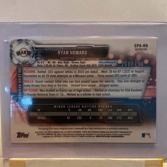 2017 Bowman Chrome Ryan Howard Autographed trading card