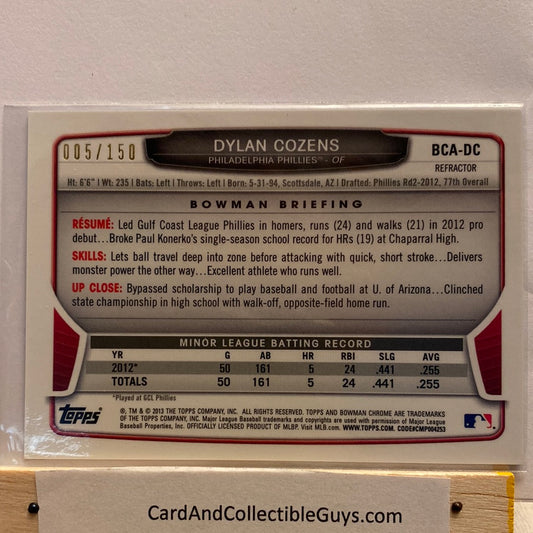 2013 Bowman Baseball Chrome Dylan Cozens Blue Refractor Autograph /150 trading card