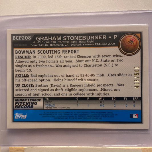 2010 Bowman Baseball Chrome Graham Stoneburner Autographed Trading Card