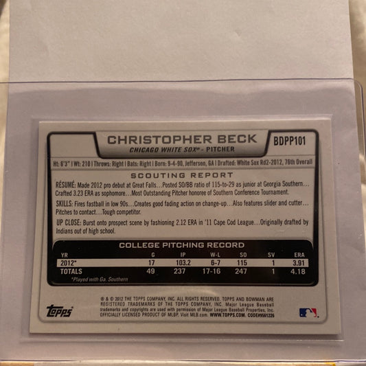 2013 Bowman Baseball Christopher Beck Autographed trading card