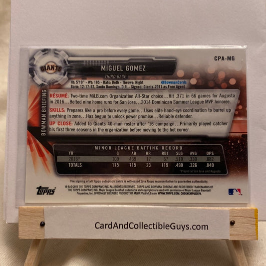2017 Bowman Chrome Miguel Gomez Autographed trading card