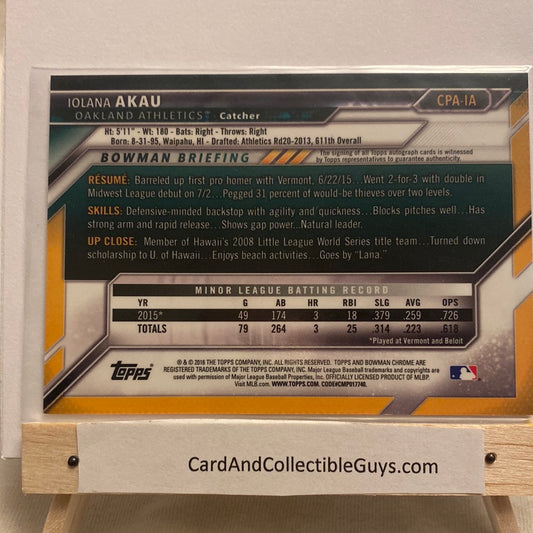 2016 Bowman Chrome Iolana Akau Autographed trading card