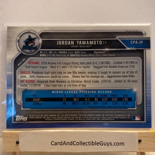 2019 Bowman Chrome Jordan Yamamoto Autographed trading card