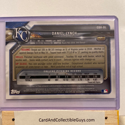 2018 Bowman Chrome Daniel Lynch Autographed trading card