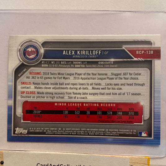 2019 Bowman Chrome Alex Kirilloff trading card