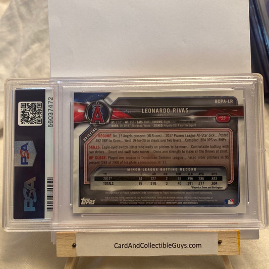 2018 Bowman Chrome Leonardo Rivas Autographed PSA9 trading card