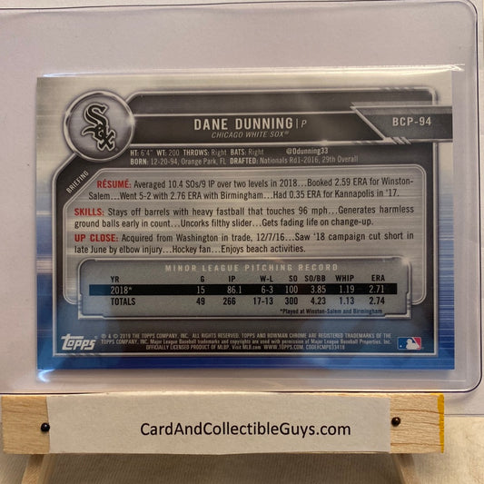 2019 Bowman Chrome Purple Mojo Refractor Dane Dunning /250 trading card