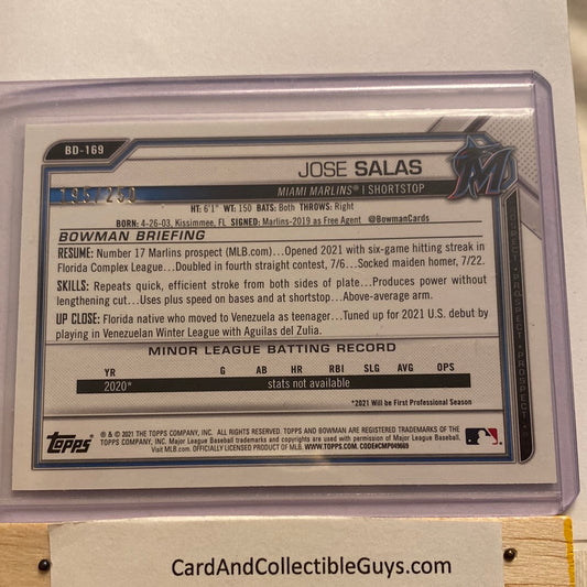 2021 Bowman Draft Jose Salas Purple Paper trading card