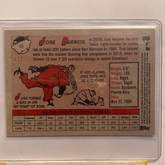 2019 Topps Archives Jose Berrios Silver /99 trading card