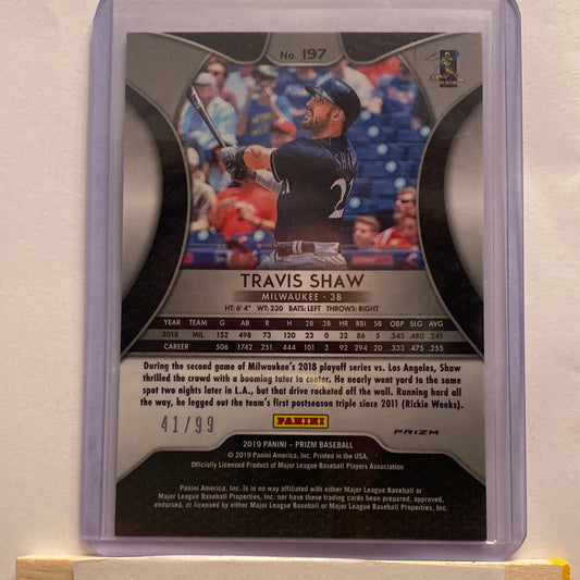 2019 Panini Prizm Travis Shaw Zebra /99 trading card