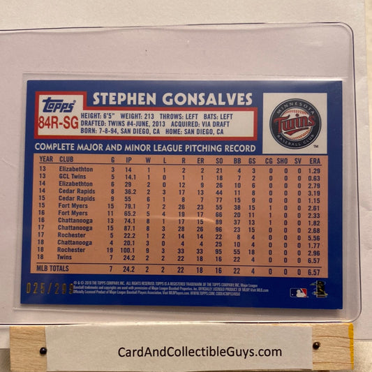 2019 Topps #84R-SG Stephen Gonsalves /299 trading card