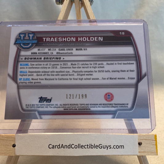 2022 Bowman Chrome University Blue Raywave Refractor 121/199 #18 Traeshon Holden Trading Card