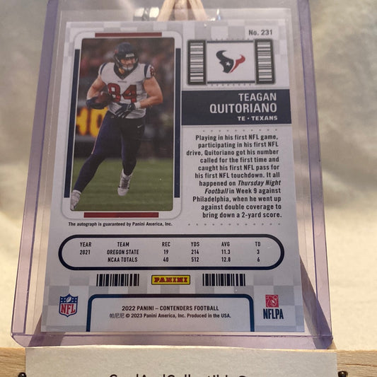 2022 PANINI CONTENDERS #231 TEAGAN QUITORIANO ROOKIE TICKET AUTO TEXANS RC Trading Card