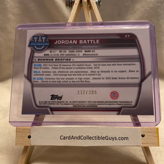 2022 Bowman University Chrome Base Purple Mini Diamond #27 Jordan Battle /399 Trading Card