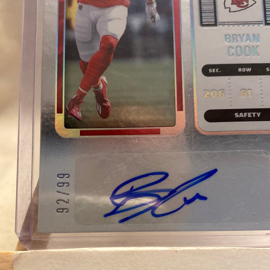 2022 Contenders Bryan Cook Playoff Rookie Ticket Auto 92/99 Chiefs RC SP Trading Card