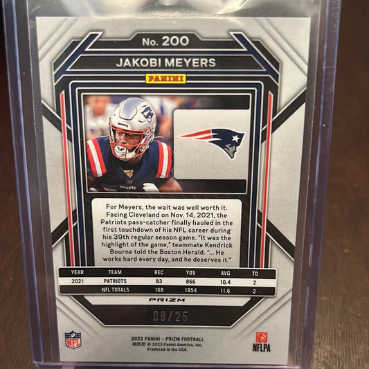 2022 Panini Prizm Jakobi Meyers FOTL Blue Shimmer 08/25 Patriots 200 SSP Trading Card