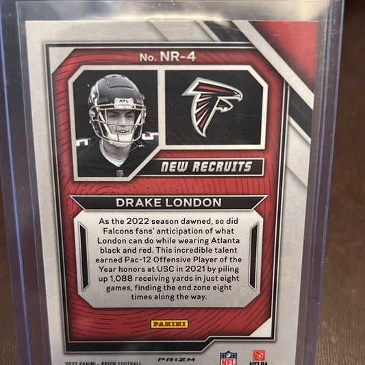 2022 Panini Prizm Football Drake London New Recruits NR-4 Rookie Silver Holo RC Trading Card