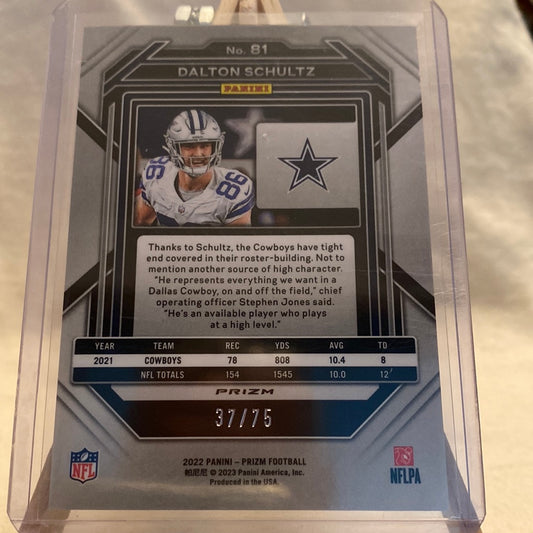2022 Panini Prizm DALTON SCHULTZ Green Scope Prizm 37/75 #81 Dallas Cowboys Trading Card
