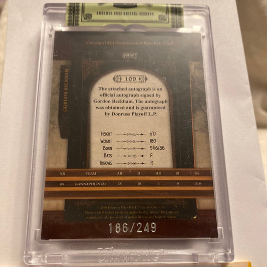 2008 Donruss playoff prime cuts Gordon Beckham Autographed /249 trading card