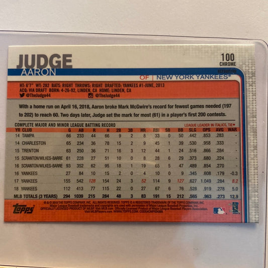 2019 Topps Chrome Aaron Judge Pink Refractor trading card