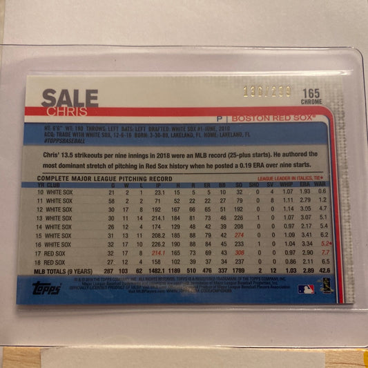2019 Topps Chrome Chris Sale Purple Refractor trading card