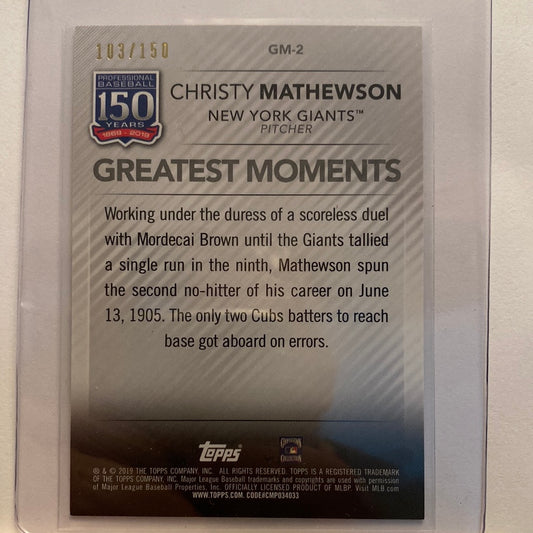 2019 Topps Christy Mathewson Gold foil /150 trading card