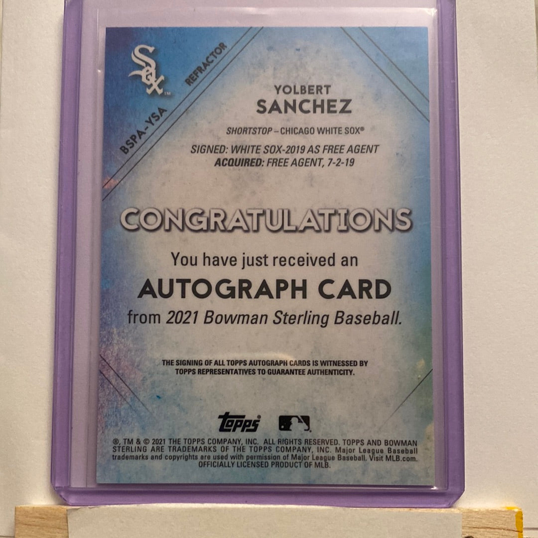 2021 Bowman Sterling Yolbert Sanchez Autographed trading card