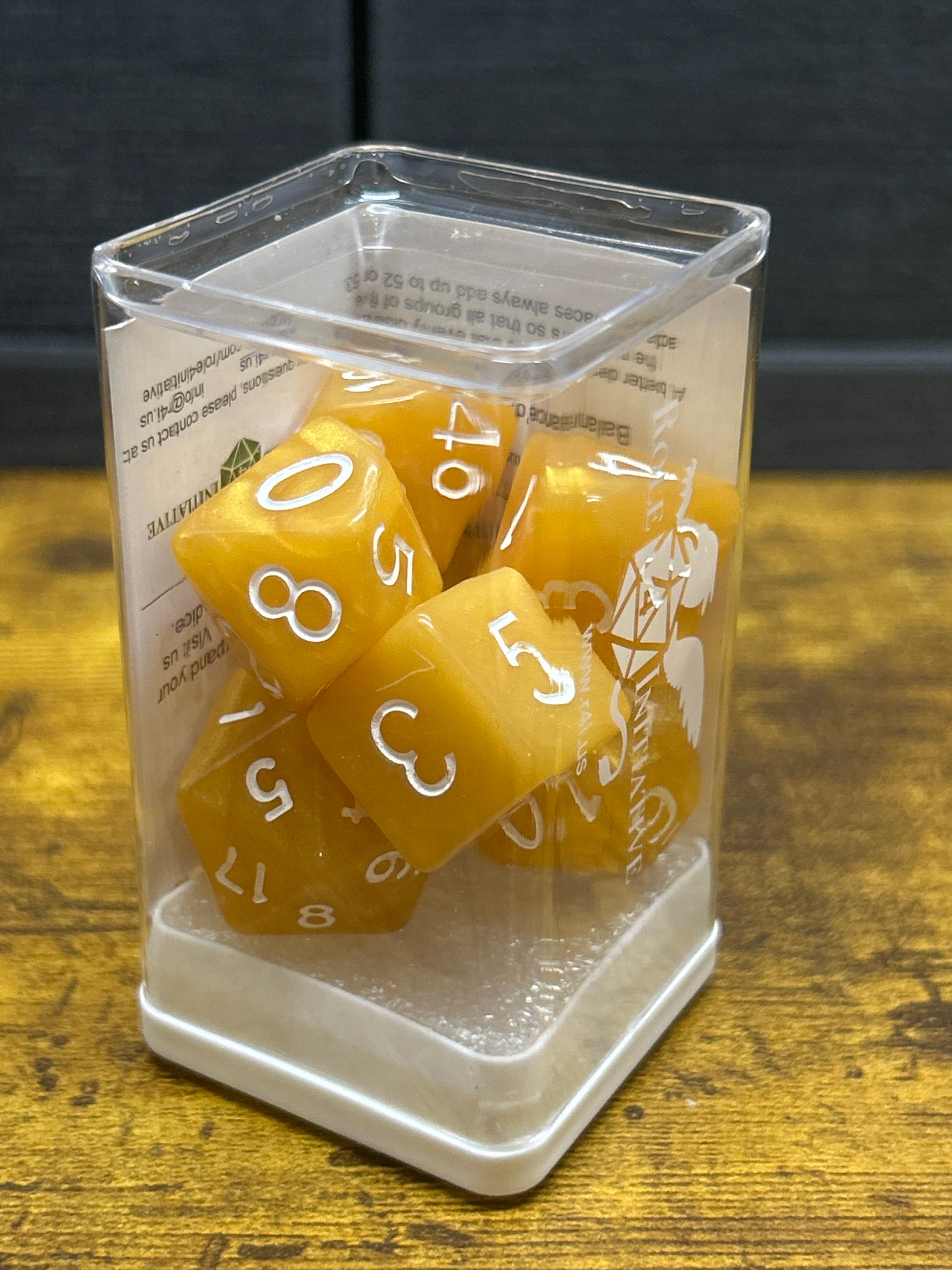 7-set “Marble Caramel” RPG Dice by Role 4 Initiative. 1d20, 1d%, 1d12, 1d10, 1d8, 1d6, Arch’1d4