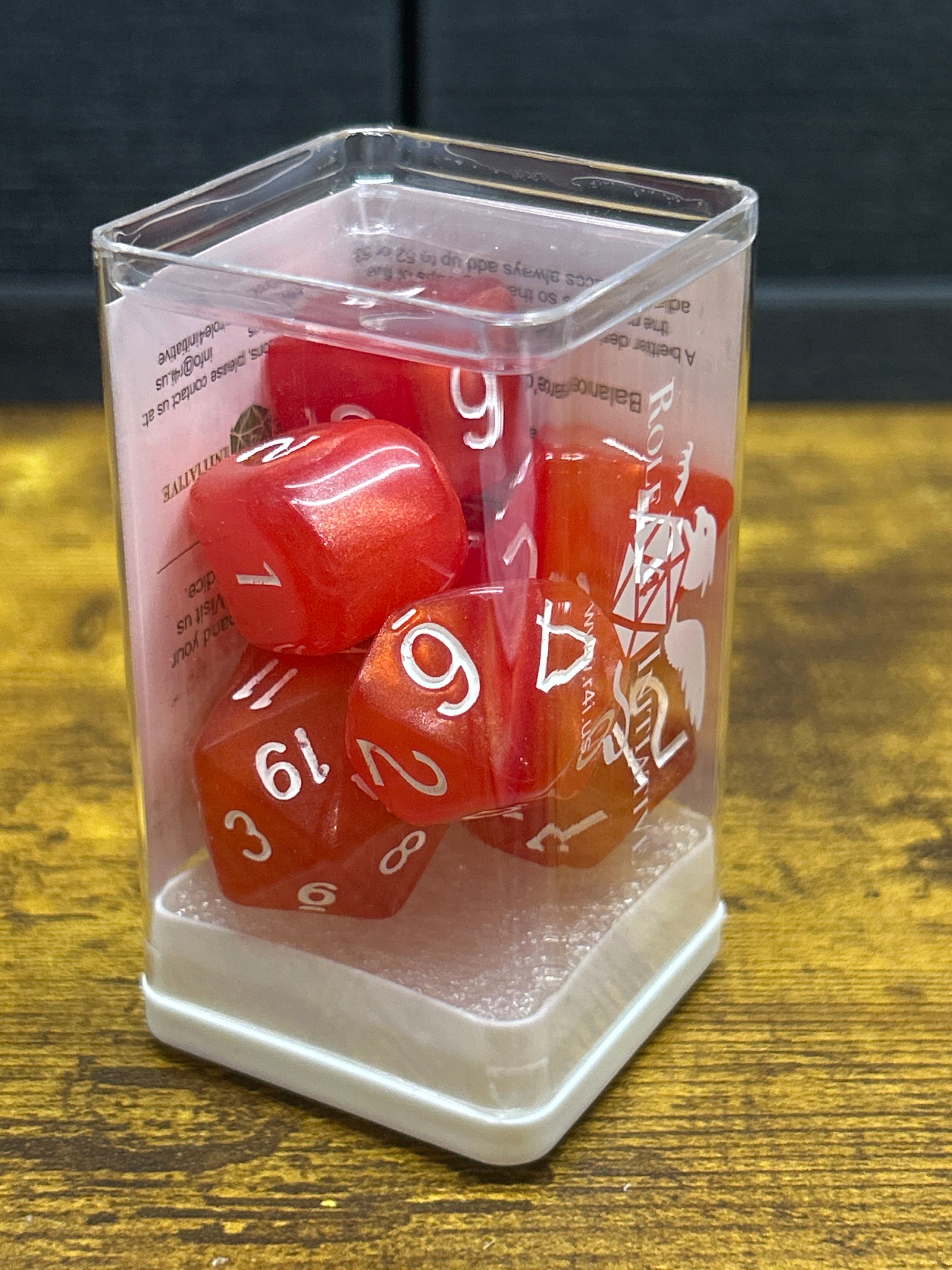 7-set “Marble Red” RPG Dice by Role 4 Initiative. 1d20, 1d%, 1d12, 1d10, 1d8, 1d6, Arch’1d4.