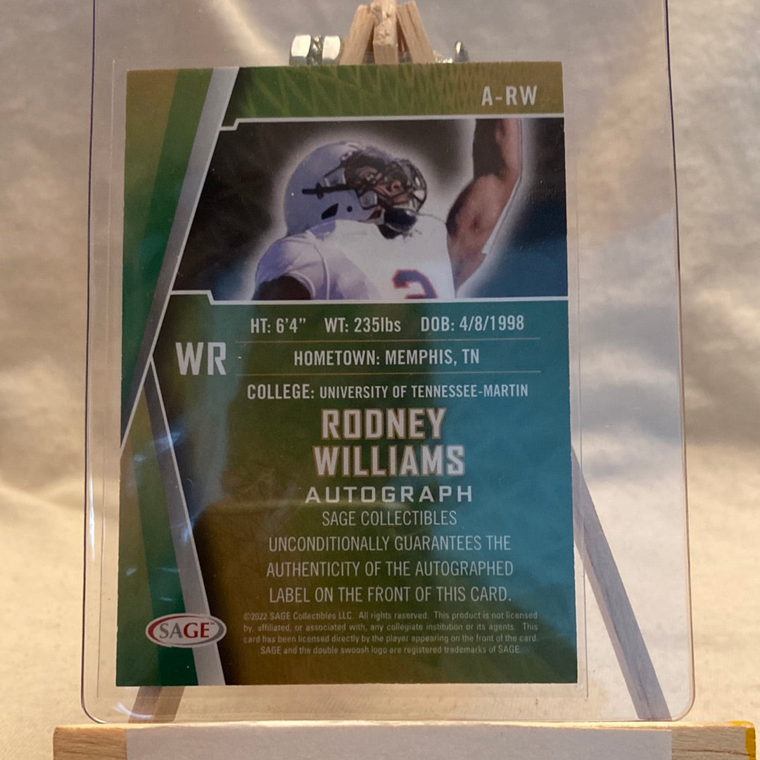 2022 SAGE High Series Football Rodney Williams Rookie Auto Denver Broncos Trading Card